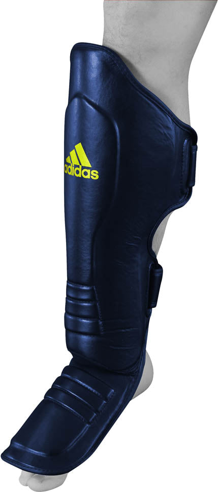 Deze scheenbeschermers zijn gemaakt van zeer goede kwaliteit PU. De padding bestaat uit een geïnjecteerde EVA Foam wat zorgt voor een optimale bescherming. Het heeft een klittenbandsluiting aan de achterzijde, een perfecte pasvorm en blijven perfect zitten tijdens het trainen. De binnenzijde van de scheenbeschermers zijn voorzien van een sneldrogend materiaal dat vocht en lucht regulerend is, dit zorgt voor meer comfort en een langere levensduur. De adidas scheenbeschermers zijn buitengewoon geschikt voor thai/kickboksen en MMA.