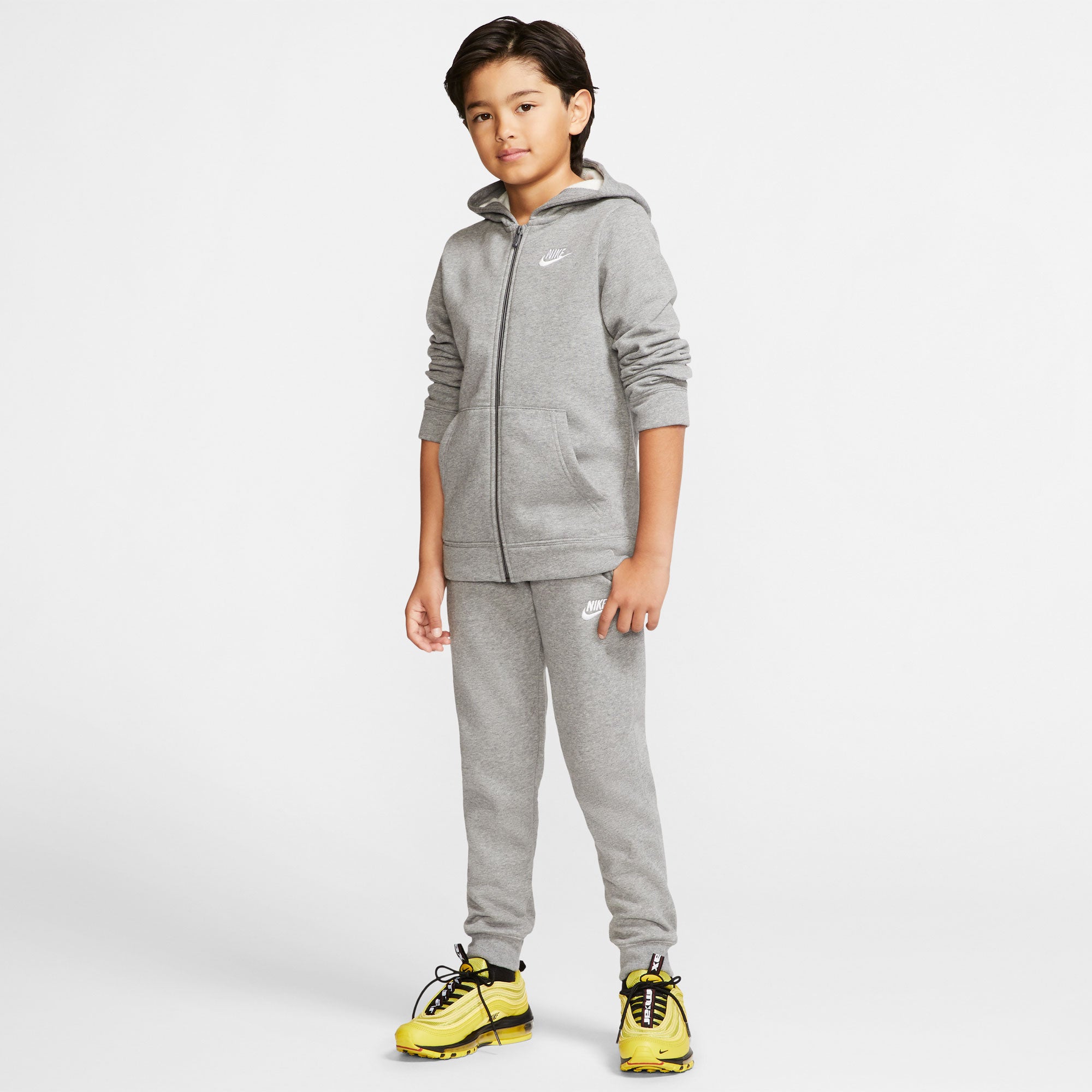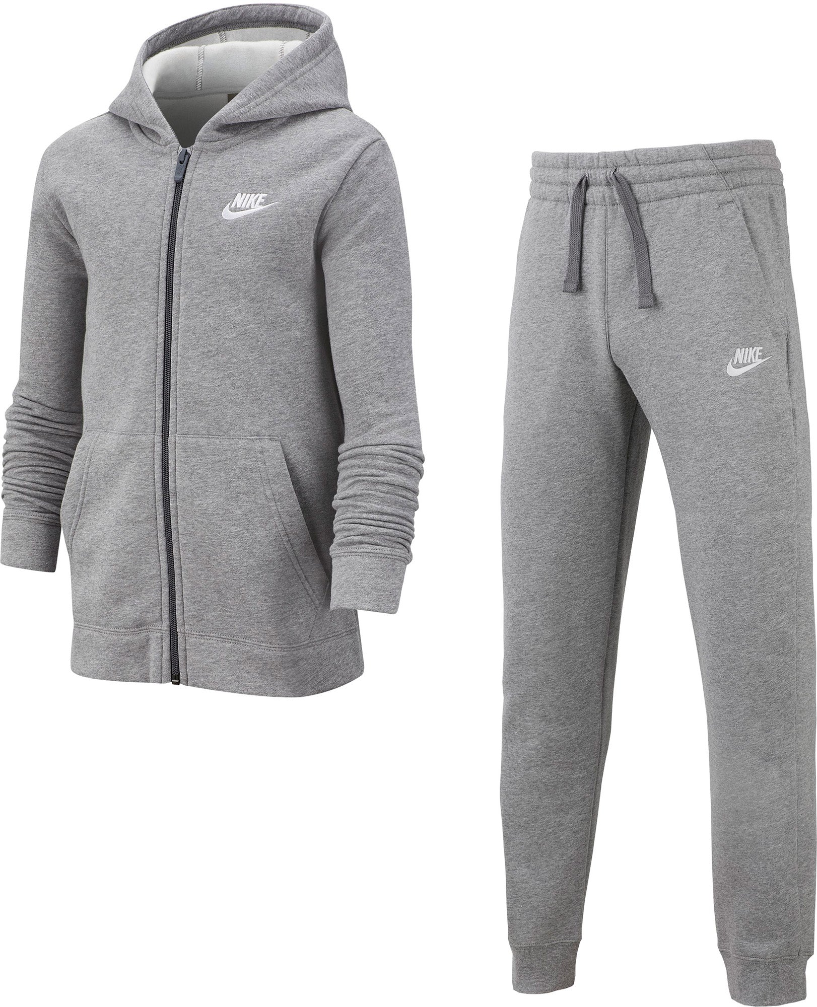 Het Nike Sportswear trainingspak voor jongens bestaat uit een jack met rits over de hele lengte en een broek gemaakt van zachte fleece. Ze hebben een relaxte pasvorm voor langdurig comfort.