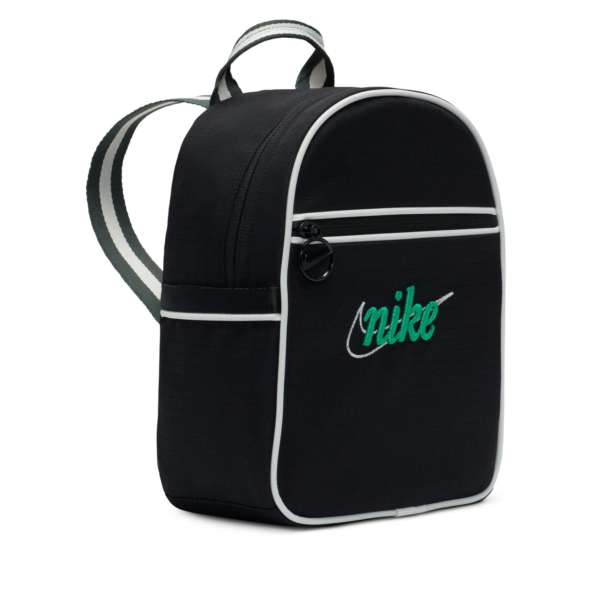 Gooi hem op je rug en ga op pad. De Nike Sportswear Mini rugzak combineert retro-varsitystijl met een strak metallic accent. Je kleine essentials passen in het hoofdvak met rits dat een mesh vak bevat voor extra organisatie. Een ritsvak op de buitenkant met een metalen Swoosh logo biedt snel toegang tot je telefoon en sleutels.
