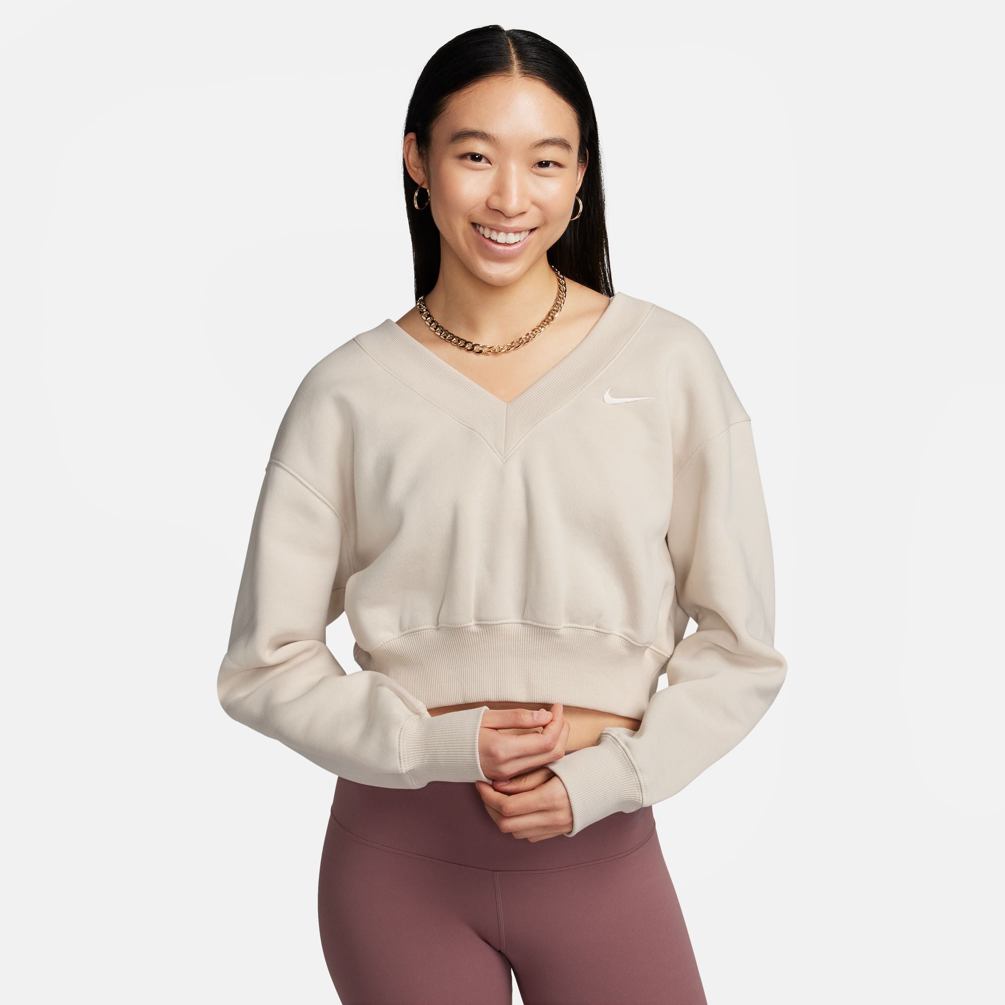 Maak kennis met onze nieuwe luxe loungewear die is geworteld in stijl, comfort en veelzijdigheid. Geniet van het zachte geborstelde fleece, de verlaagde schouders en de losse mouwen die zacht en ruim aanvoelen (zonder te veel volume toe te voegen). De geribde accenten geven dit korte sweatshirt met V-hals een opvallende look en een comfortabele pasvorm.