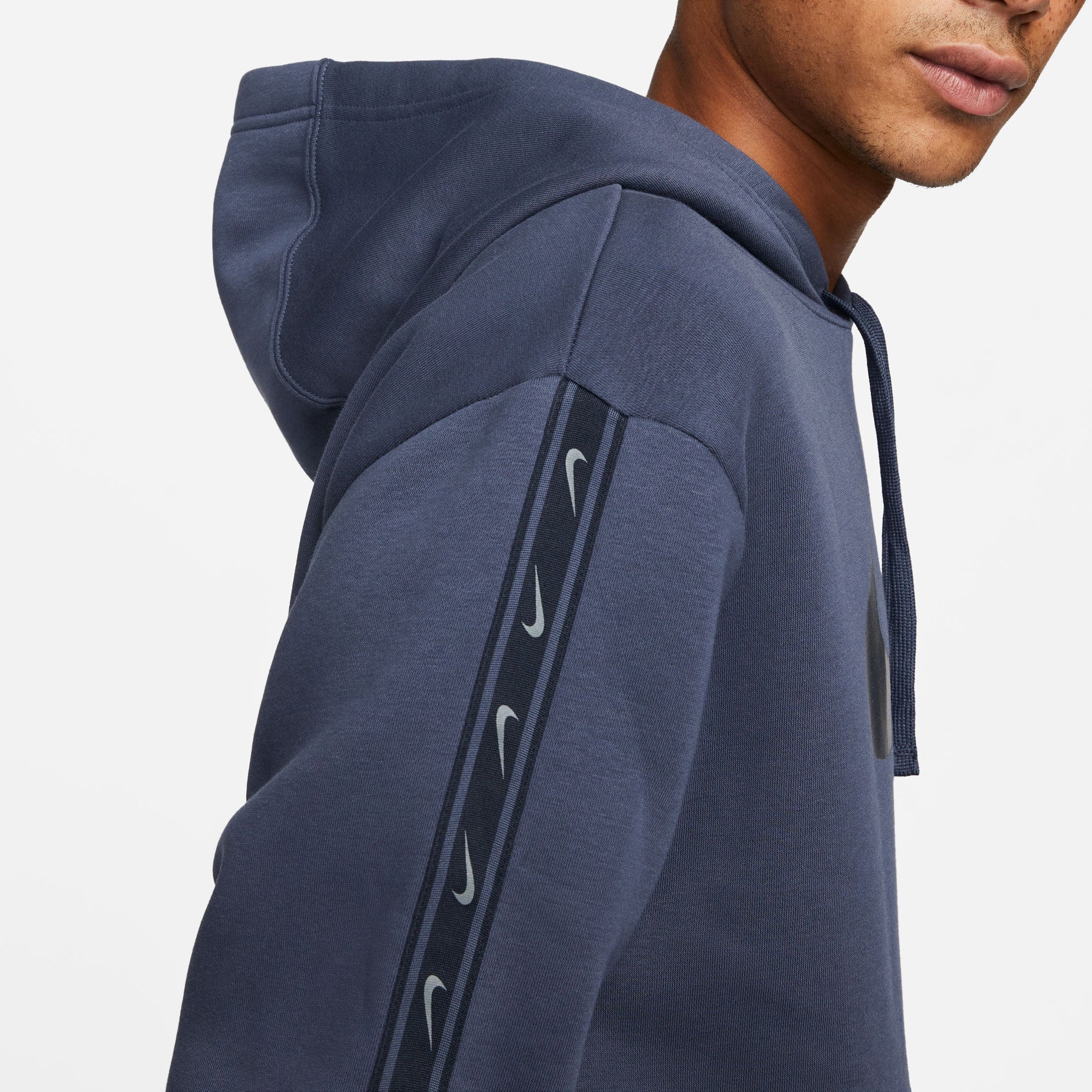 Nike Sportswear Repeat fleece hoodie voor heren Verhef je dagelijkse look met de frisse, minimalistische stijl van dit kledingstuk. Zachte fleece is de knusse laag waar je van houdt, terwijl Swoosh-ontwerpen op repeat een gestroomlijnde look geven. Fleece voelt superzacht aan en voelt licht pluizig aan de binnenkant, zodat je warm en comfortabel blijft. Capuchon met trekkoord zorgt voor verstelbare bedekking wanneer je het nodig hebt. Kangoeroezak geeft je een gemakkelijke plaats om je essentials of je handen in op te bergen. Geribbelde manchetten en zoom helpen de hoodie op zijn plaats te houden terwijl je beweegt.