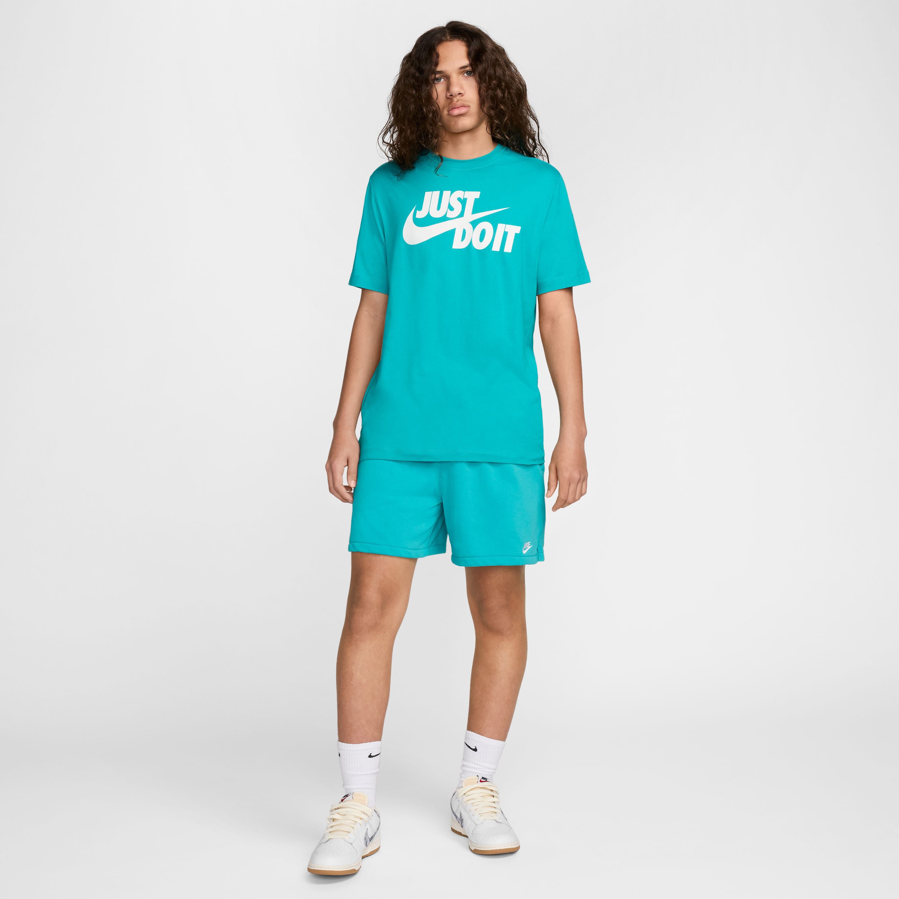 Het Nike Sportswear T-shirt voor heren voelt zacht aan door het gebruik van zacht jerseykatoen en op de borst staat een 'Just Do It.' graphic.
