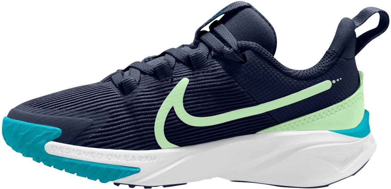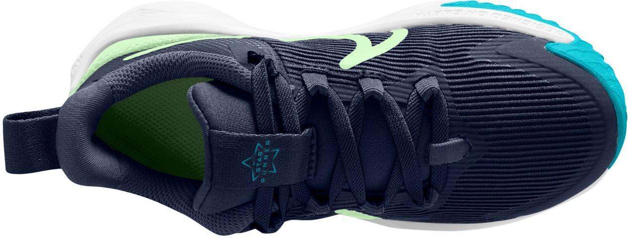 Ga in een mum van tijd de deur uit met de Star Runner. Lussen op de tong en hiel maken het gemakkelijk om de schoen wijd te openen, zodat kleine sterlopers in kunnen stappen en aan de slag kunnen. Zachte demping in de tussenzool zorgt voor een comfortabel, verend rendement, dus nog 1 ronde, ronde en draai is altijd een optie. Het loopvlak grijpt bestrating, gras en grind vast om ze extra grip te geven, terwijl een met rubber omwikkelde teen de constructie steviger maakt, zodat ze verder kunnen gaan in hetzelfde paar Star Runners.