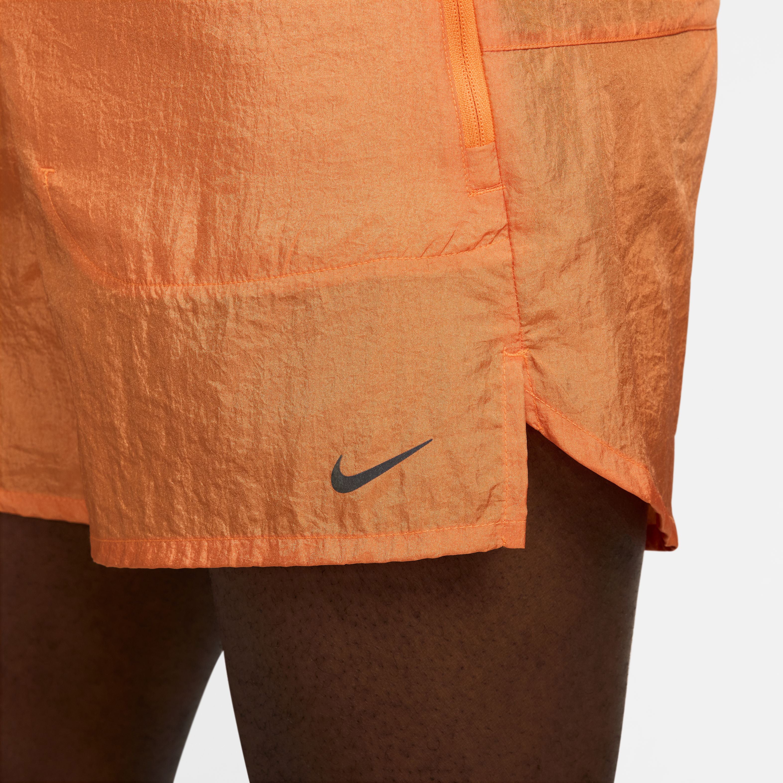 Vertrouw op Nike Running Division voor alles wat je nodig hebt om overdag en 's avonds, en bij regen of zonneschijn, je runs te doen in het geplaveide landschap. De Stride shorts zijn gemaakt van zweetafvoerend nylonmateriaal om je koel en zelfverzekerd te houden. Een keur aan ritszakken biedt veilige opslag voor benodigdheden zoals een pasje, sleutels of je telefoon.