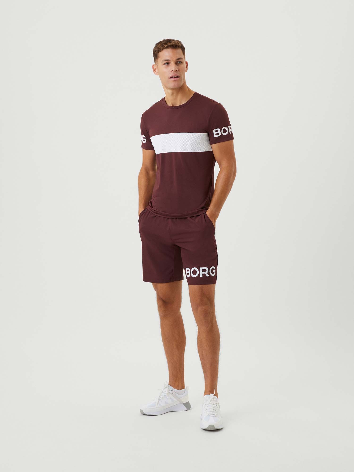 Het Björn Borg Borg T-shirt Stripe is een performance T-shirt, uitgevoerd in een regular-fit van zacht gerecycled stretchpolyester. Dit design met ronde hals kenmerkt zich door een inzetpaneel onder de mouwen en een bredere mouwinzet voor optimale bewegingsvrijheid. Verder is zowel het design als de achterzoom langer, perfect voor oefeningen boven het hoofd en extra bedekking. De iconische Borg-logoprints op de mouwen en een grote mesh streepprint op de borst ronden dit item kenmerkend af. Het model is 188 cm lang en draagt maat M.