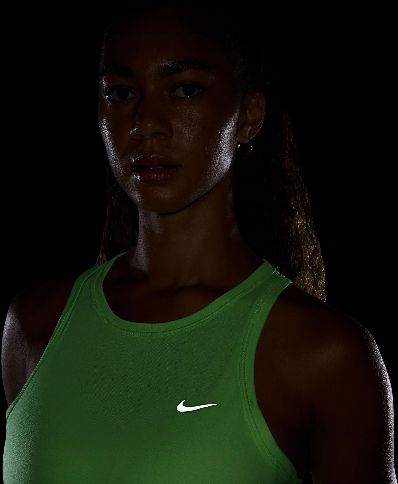Nike Tempo Dri-FIT hardlooptanktop voor dames Vind je ritme in deze lichte Tempo tanktop. Soepel, zweetafvoerend materiaal houdt je droog en mesh zijvlakken zorgen voor ventilatie bij elke stap, zodat je fris en comfortabel kunt oefenen je tempo te vinden. Nike Dri-FIT technologie voert zweet weg van je huid voor snellere verdamping, zodat je droog en comfortabel blijft. Aansluitende pasvorm voor een omsloten gevoel.