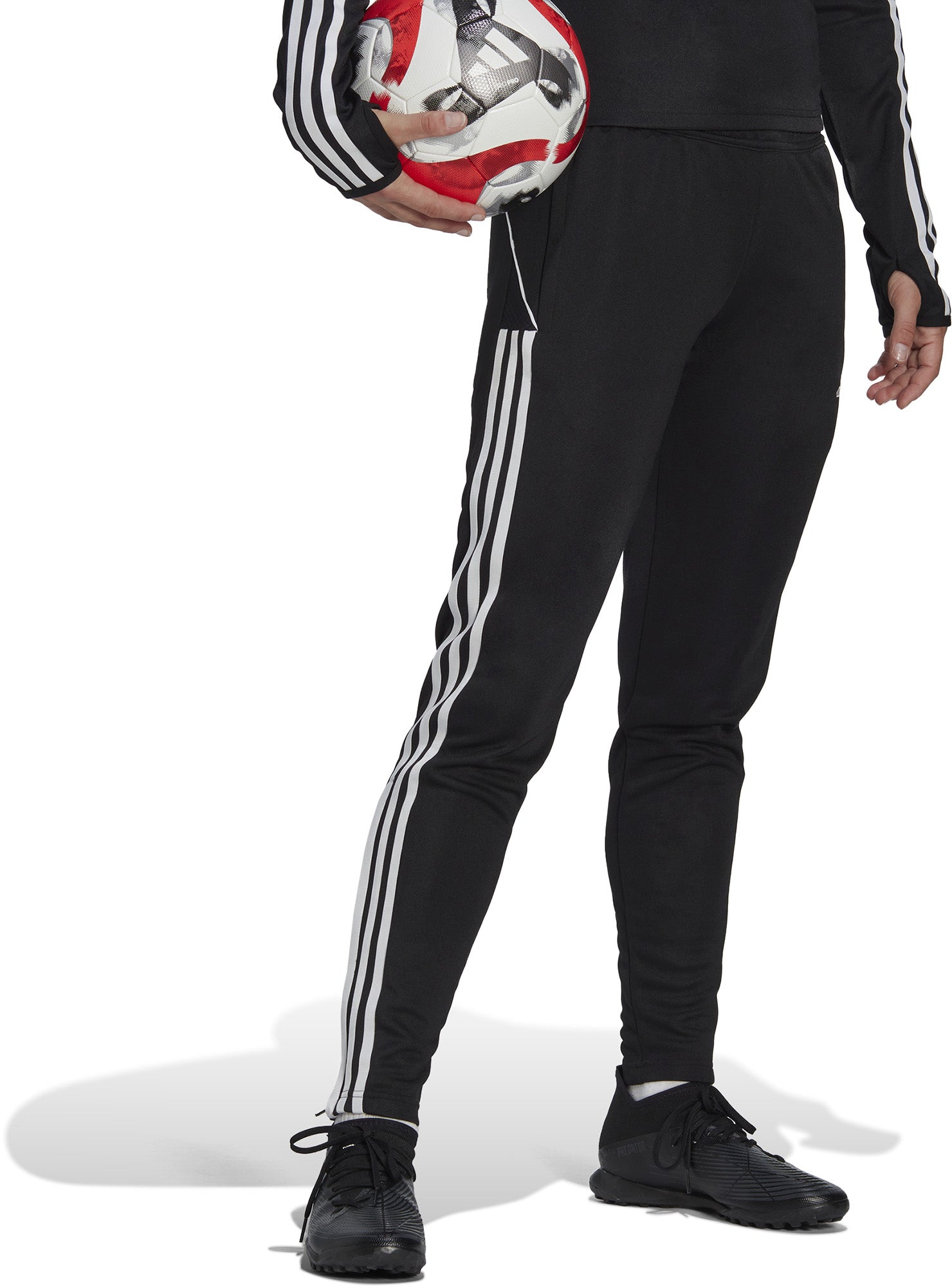 Gemaakt voor de prachtigste sport. Deze adidas sportbroek uit de Tiro 23 League-collectie houdt je snel met een strakke, gestroomlijnde pasvorm. AEROREADY voert vocht weg van je huid, zodat je droog blijft als je workout intensiever wordt. Als het harde werk achter de rug is, trek je 'm ook nog makkelijk uit. Door enkelritsen glijdt de broek namelijk eenvoudig over bulky schoenen en kicksen.