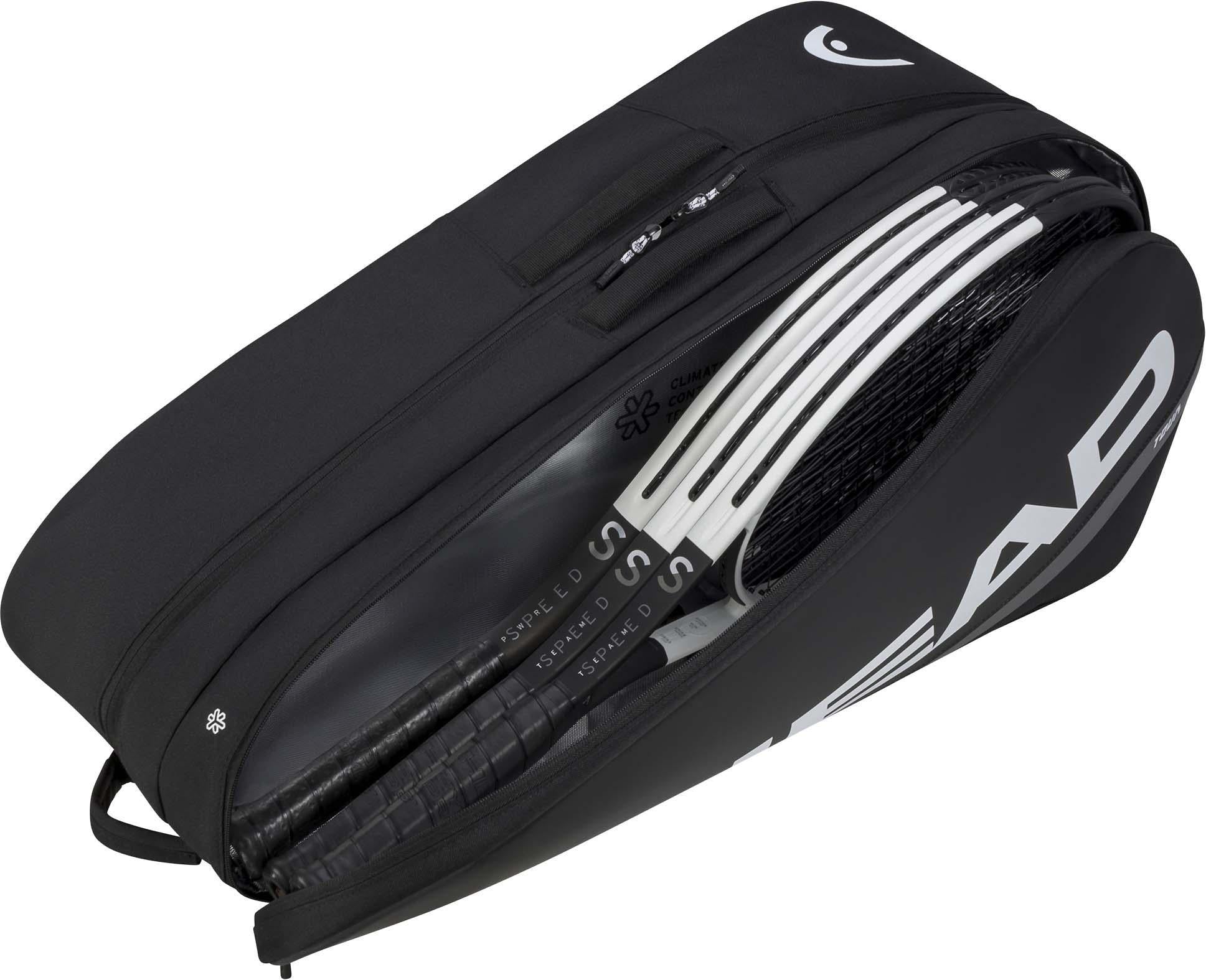 Je kunt maximaal 9 rackets meenemen, en al je andere benodigdheden, in the TOUR RACKETTAS L BKWH-tennistas, die een nieuwe vorm en een nieuwe gewatteerde voering heeft voor extra stabiliteit. Eén van de twee ruime hoofdvakken heeft CCT+-klimaatbeheersingstechnologie die je rackets tegen extreme temperaturen beschermt. Het organiseren van je spullen is eenvoudig in een tas die wordt geleverd met een geïntegreerd schoenenvak, een binnenvak met rits en een buitenvak met rits voor snelle toegang. Met het rugzakdraagsysteem en de nieuwe bovenhandgrepen, kun je ervoor kiezen om de TOUR RACKETTAS L BKWH over je schouder of op je rug te dragen. Of je kunt hem gewoon met de hand dragen. De hangtag is gemaakt van gerecycled papier en bevestigd met een hennepkoord, een reflectie van de inzet van HEAD om minder plastic in hun producten te gebruiken.