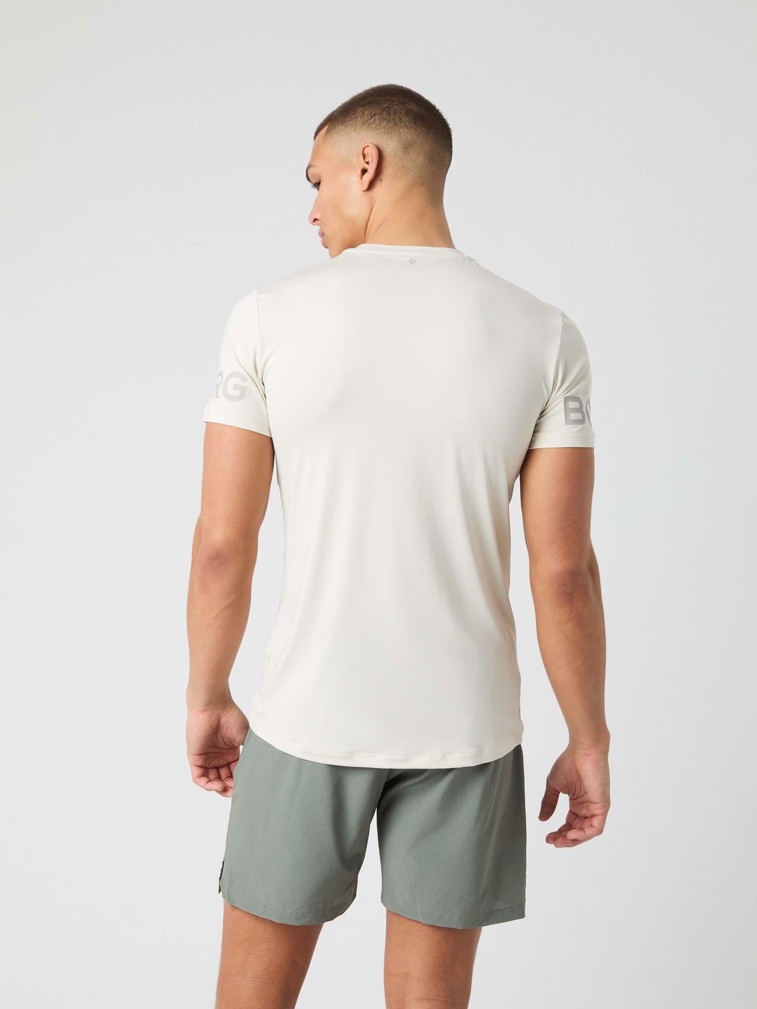Het Björn Borg T-shirt is een klassiek trainingst-shirt gemaakt van zachte gerecyclede polyester stretchstof van hoge kwaliteit. Het heeft een normale pasvorm met een ronde hals, een langere lengte voor oefeningen boven het hoofd en een langere achterkant voor extra bedekking. Met inzetpanelen onder de armen en hogere armsgatconstructie voor optimale bewegingsvrijheid, en het iconische Borg-logo op de armen.
