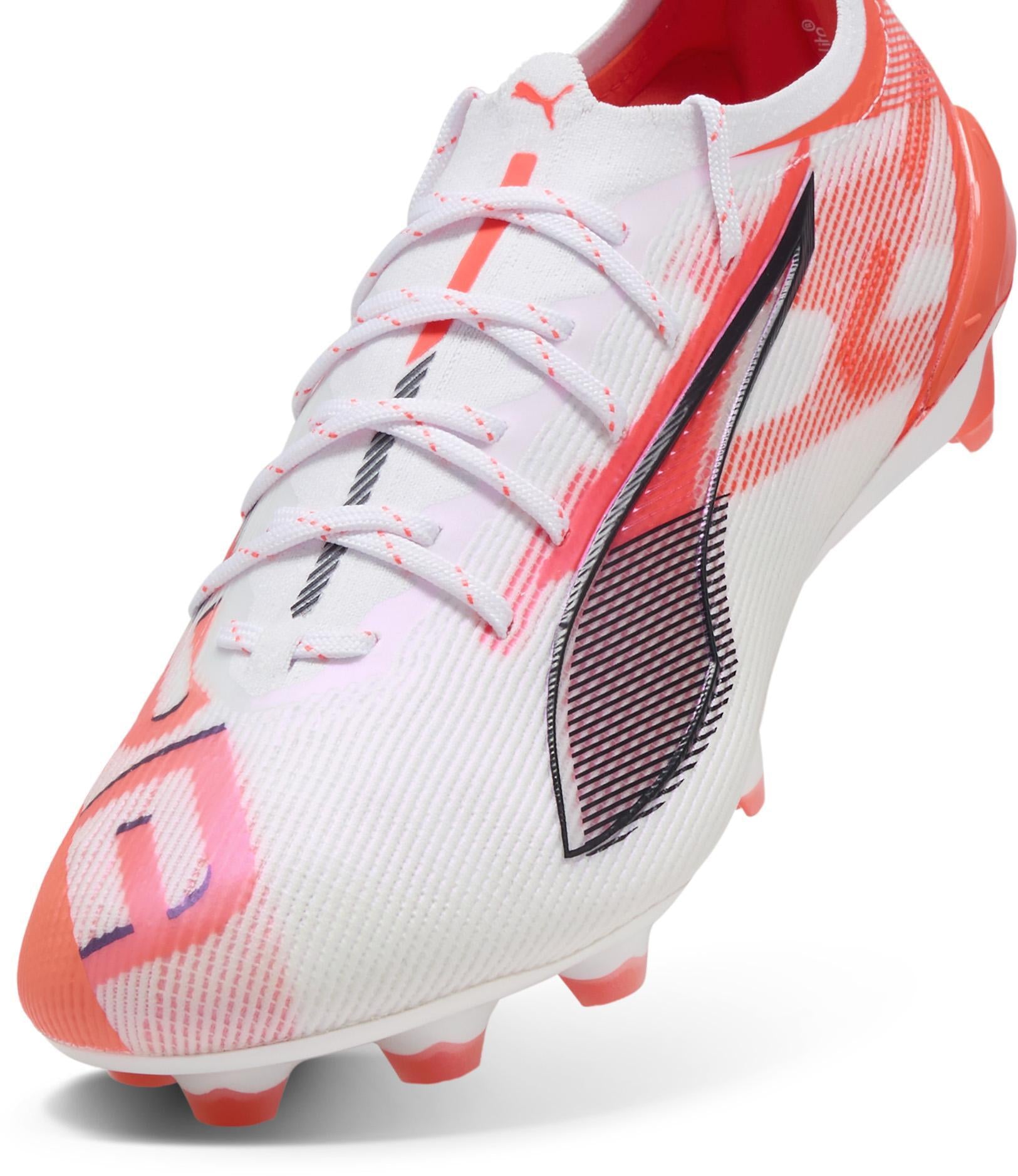 Hoe snel is de ULTRA 5 ULTIMATE? Maak je veiligheidsgordel vast, maak je veters vast en laat je snelheid de vrije loop. PUMA's nieuwste innovatie combineert de SPEEDSYSTEM-buitenzool en FastTrax-noppen voor explosieve acceleratie. Met GripControl Pro-skin en PWRTAPE SQD-ondersteuning domineer je het veld met ongeëvenaarde behendigheid en precisie. Speel op volle toeren.