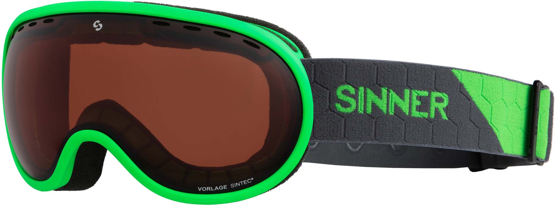 De SINNER Vorlage skibril heeft een volledig geoptimaliseerde pasvorm, ontworpen om te beschermen en te ondersteunen bij het behalen van sportieve topprestaties. Het frame van de SINNER Vorlage is zo gemaakt dat het een groot gezichtsveld biedt. De Vorlage is voorzien van onze nieuwste SINTRAST®-lenstechnologie. Deze lenzen filteren niet alleen slecht blauw licht en 1% UV-licht, deze technologie geeft ook een combinatie van kleurversterking en kleurcontrast. SINNER SINTRAST®-lenzen zorgen voor hoge helderheid, hoog contrast, verbeterde details en zijn erg comfortabel voor de ogen. Ze zorgen voor het beste zicht! De rode lens (categorie 2) van deze Vorlage is ideaal voor gedeeltelijke bewolking tot zonnige omstandigheden. Het zachte hypo-allergene foam geeft een confortabele aansluiting op het gezicht. De SINNER Vorlage heeft een verstelbare anti-slipband, waardoor de bril goed te gebruiken is in combinatie met een skihelm.