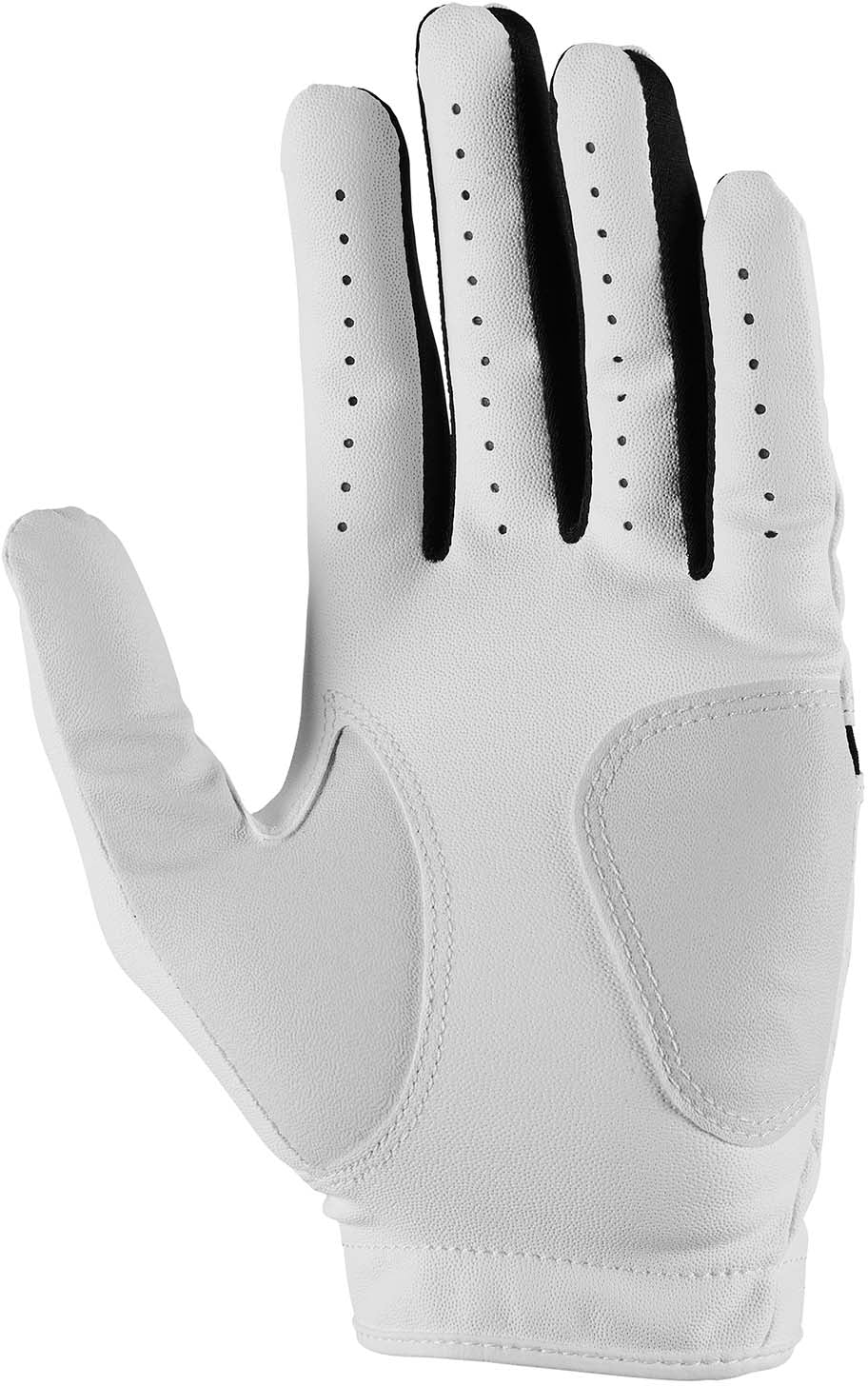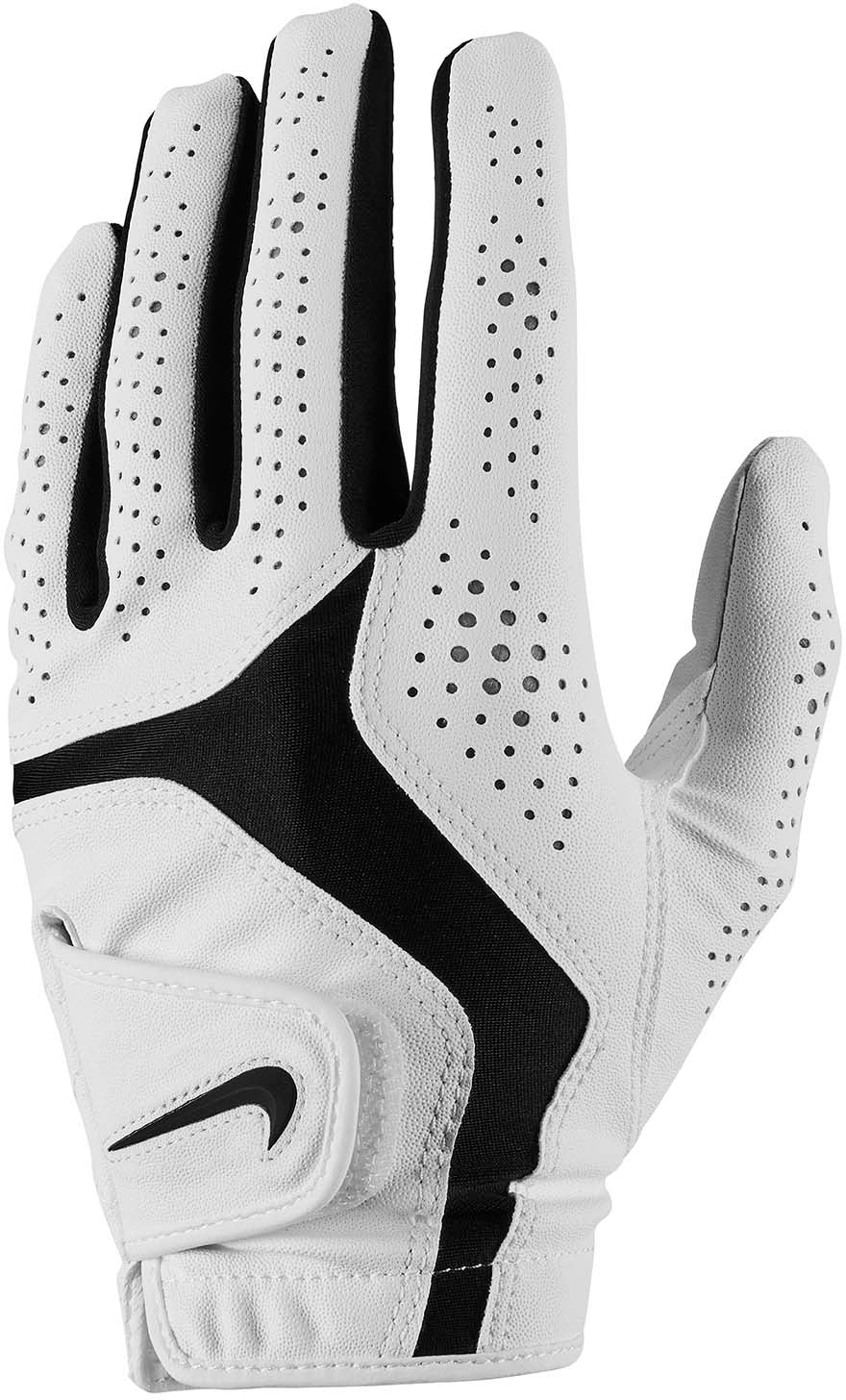 De Nike Dura Feel 10 golfhandschoen is gemaakt met licht, synthetisch leer op de palm voor stevige grip. Dankzij het stretchmateriaal op de rug van de hand kun je je natuurlijk bewegen bij iedere swing. Deze vernieuwde versie heeft een versterkte handpalm en duim voor extra stevigheid op de plekken waar je die het hardst nodig hebt.