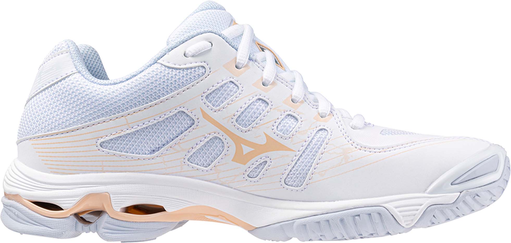 Deze hoogwaardige volleybalschoen biedt een grote dynamische demping en stabiliteit met de Mizuno WaveTechnology. Dankzij zijn technische en lichtgewicht zool levert de Wave Voltage een geweldige acceleratie, zelfs bij de meest intense zijdelingse bewegingen. Het op mesh gebaseerde bovenwerk met naadloze constructie aan de zijkant zorgt voor een zeer comfortabele pasvorm.