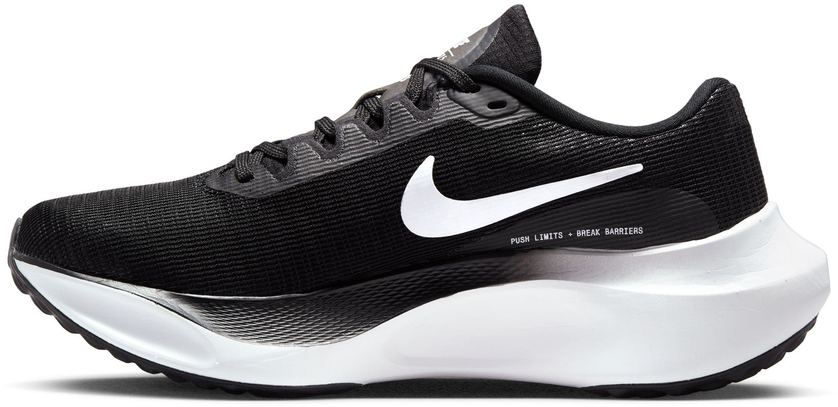 Overbrug de kloof tussen je weekendtraining en wedstrijddag met een stevig design dat je niet alleen aan de startlijn van je favoriete race kan inzetten, maar ook in de dagen en maanden na je overwinning. Het biedt comfort en betrouwbaarheid, maar met een veerkrachtig gevoel waardoor je je snel en fris voelt. Dat soort veelzijdigheid is ongewoon op hardloopgebied. Maar wie zei dat je niet alles kunt hebben?Hallo ZoomXHet nieuwe, gerecyclede ZoomX foam in de middenzool tilt een al gerespecteerde, vertrouwde schoen naar een hoger performanceniveau dat nog niet eerder aanwezig was in de Fly Zoom 4. Deze toevoeging zorgt voor een lichtere, responsievere schoen. Doe je voordeel met deze veelzijdige eigenschappen, zodat je gemakkelijker, sneller en met meer plezier hardlooptBlijf in het ritmeFlexibele zool over de hele lengte zorgt voor een veerkrachtig gevoel en een soepele overgang bij verschillende tempo's. Dankzij de plaat voelt het alsof je naar voren rolt zodat je de volgende stap kunt zettenStabiliteit als je die nodig hebtZowel de voorvoet als de hak hebben een iets bredere basis voor een stabiele zool zodat je vol zelfvertrouwen bochten kunt maken op de baan. Het bovenwerk is gemaakt van lichte mesh voor een zachtere en beter ventilerende schoen die zich aanpast aan je voet.-Dynamisch vetersysteem en ondersteuning in de middenvoet omsluiten je voet voor een strakker en stabieler gevoel.