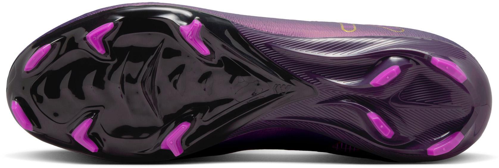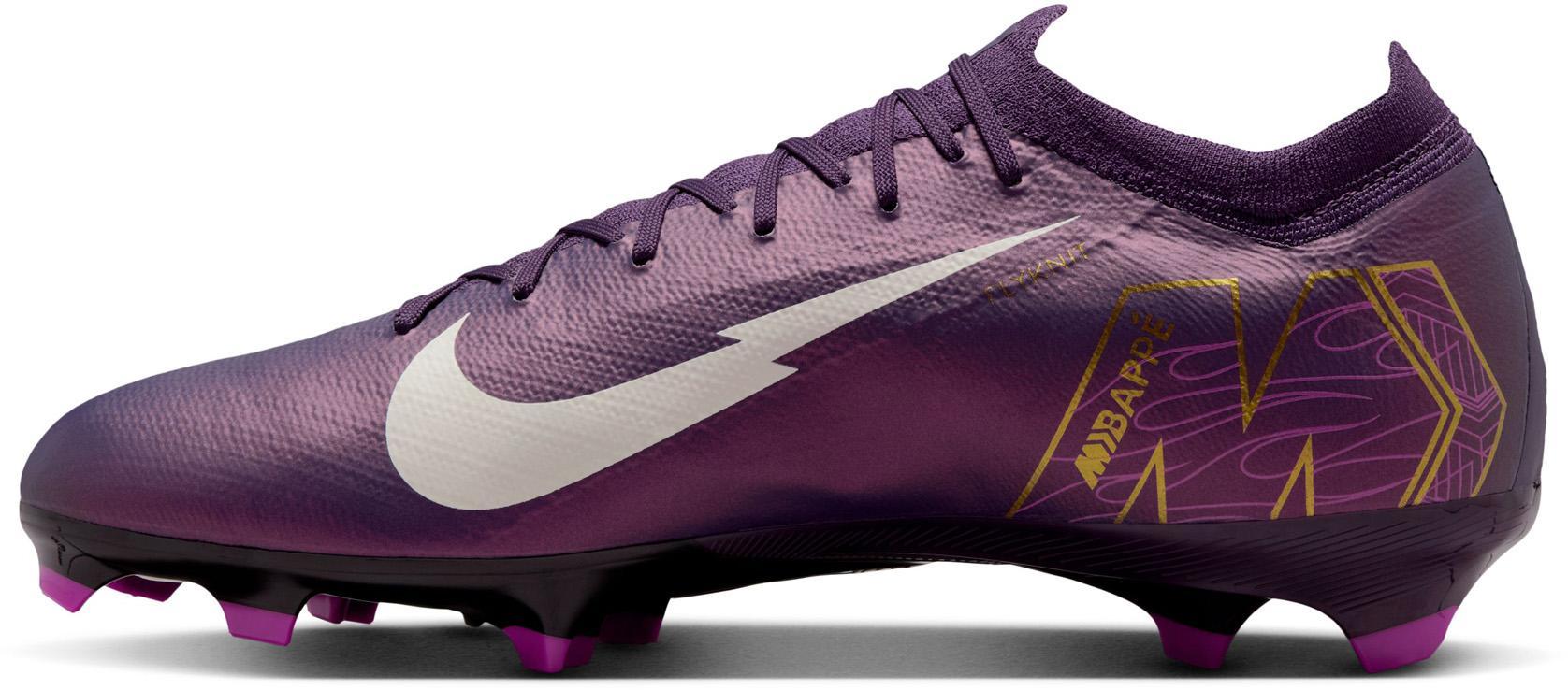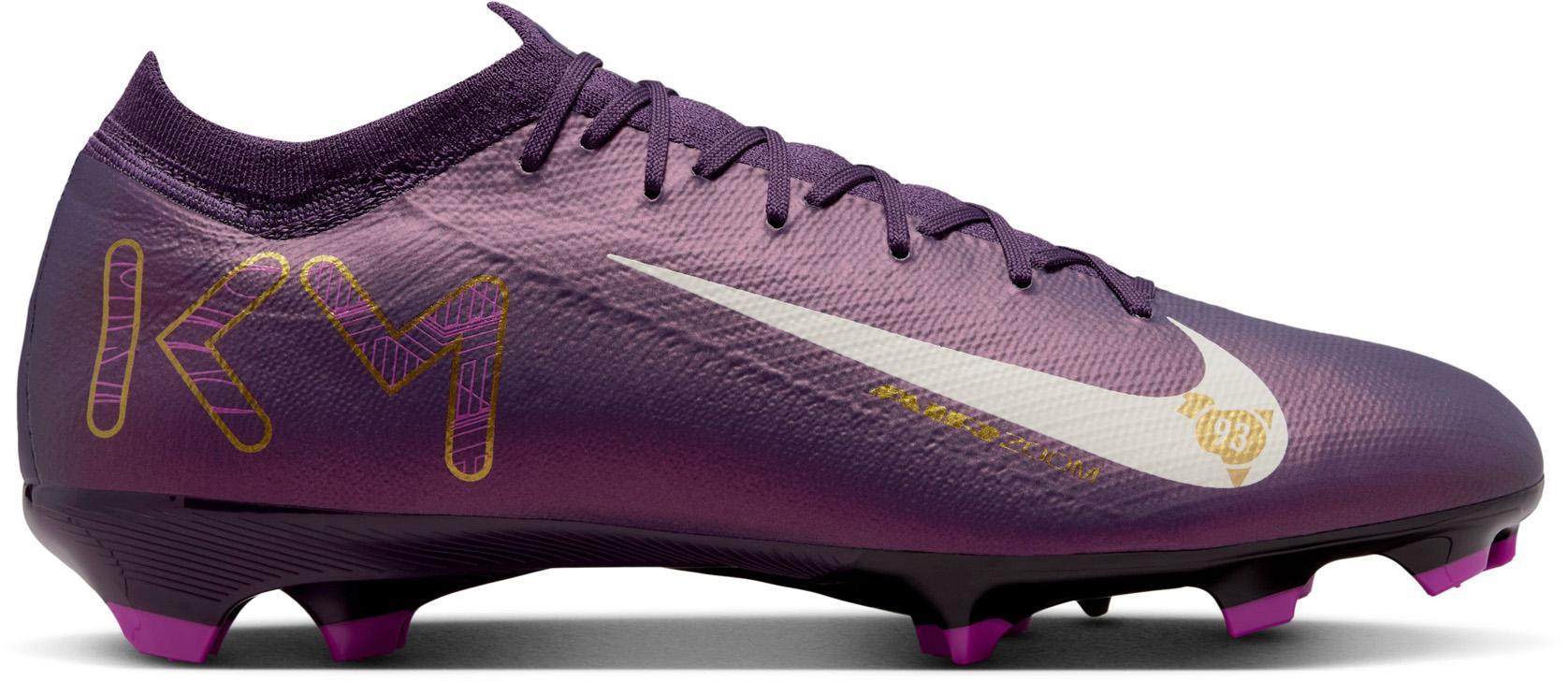 Kylian Mbappe Nike Jr. Mercurial Vapor 16 Academy "Kylian Mbappé" MG lage voetbalschoenen voor kinderen Wil je net als Kylian Mbappé je snelheid naar een hoger niveau tillen? We hebben deze Academy schoenen gemaakt met een verbeterde Air Zoom-eenheid in de hiel. Het geeft je het voortstuwende gevoel dat nodig is om door de achterlijn te breken. Het resultaat is de meest responsieve Mercurial die we ooit hebben gemaakt, zodat je je snelheid kunt laten zien en de bal achterin het net kunt slaan. Versterkte aanraking Het bovenwerk is gemaakt van NikeSkin met ingebedde chevrons, die zorgen voor balcontrole en je echt het gevoel geven van voetbal op blote voeten. Snelle tractie Het golfachtige tractiepatroon is een reeks trapsgewijze noppen, zodat deze een groter oppervlak van de Air Zoom-eenheid aangrijpt en tegelijkertijd de juiste hoeveelheid grip biedt. Nauwsluitende pasvorm We hebben het stretchgaas geüpgraded van de vorige generatie naar een aanpasbaar breisel dat flexibiliteit biedt, ondersteuning biedt en je dichter bij de bal brengt.