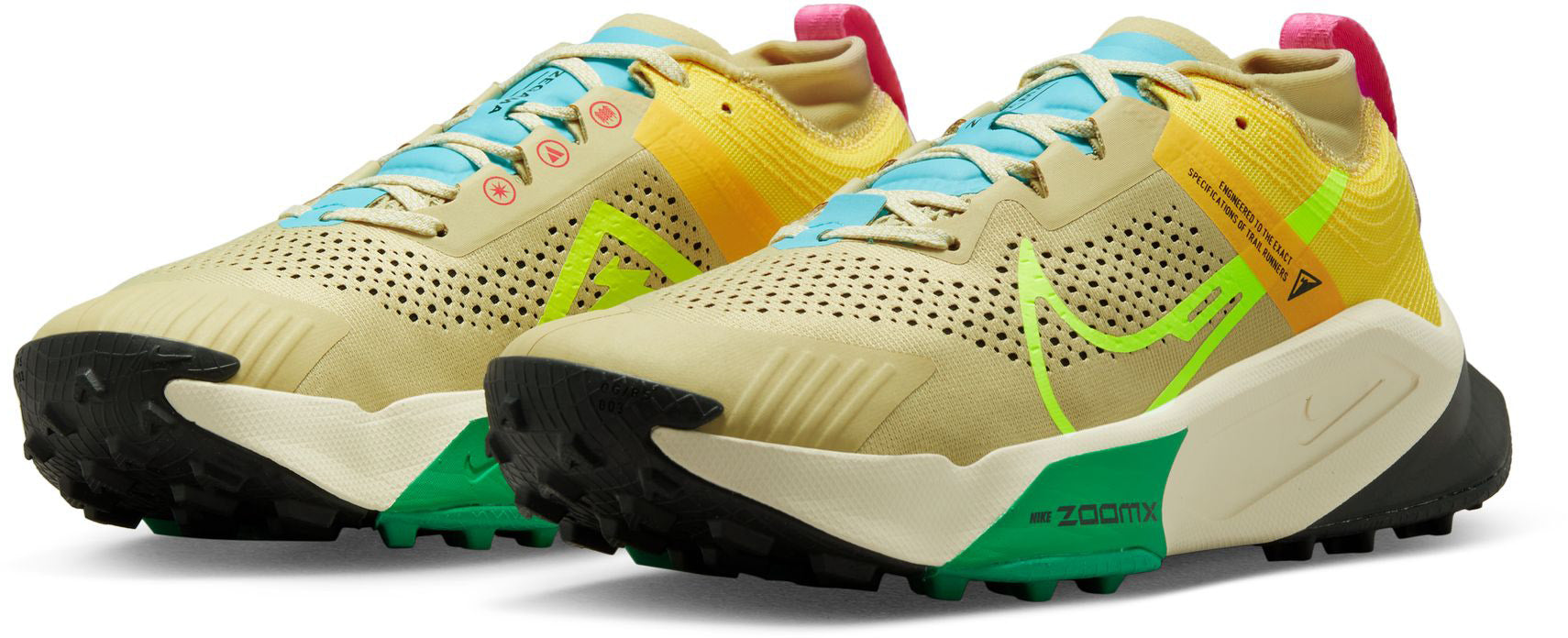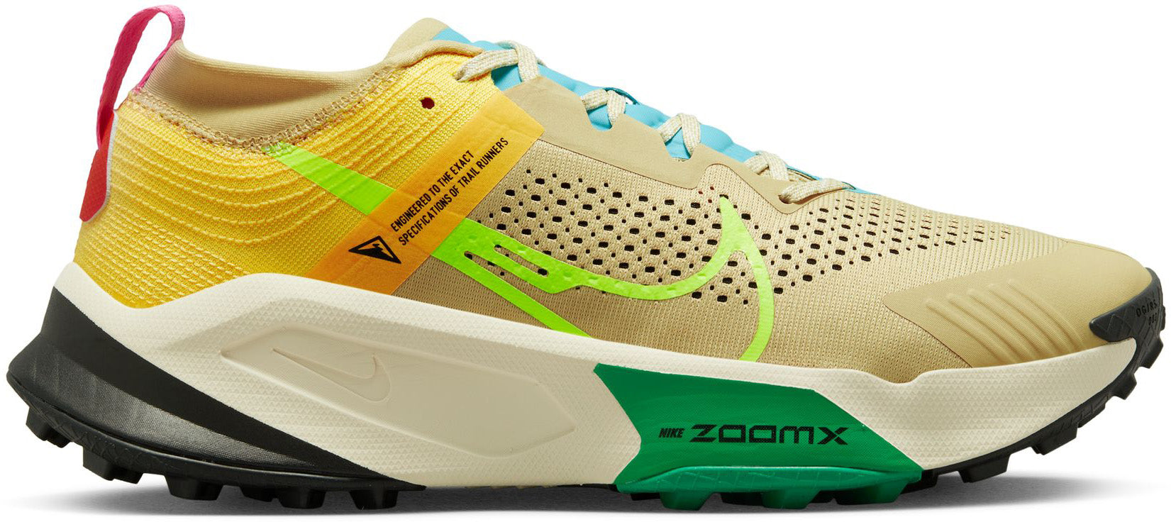 GEMAAKT VOOR ZWARE PADEN Met de Nike ZoomX Zegama Trail kun je het meest lastige terrein aan. De schoen biedt meer grip en stabiliteit, waardoor vermoeidheid wordt verminderd en je wordt beschermd tegen plotselinge impact. Zo kun je klimmen en langer blijven doorgaan als het zwaarder wordt. Of het nu gaat om een uitdagend, rotsachtig landschap dat bergopwaarts of steil wordt, of om gladheid op een verraderlijke trail, voel je zelfverzekerd als je besluit om offroad te gaan. Meer ondersteuning voor langere tijd Een lichte Nike Zoom X middenzool wordt gecombineerd met hogere stapelhoogtes voor meer bescherming tijdens langere runs. Zelfverzekerd op elke ondergrond Een dieper, divers noppenpatroon met meer ruimte zorgt voor meer grip op lastigere terreinen. Een stevig gevoel op elke ondergrond Een bovenwerk van mesh en een interne constructie in de hak zorgen voor stabiliteit op alle soorten paden. Daarnaast zorgen ze ook voor betere ventilatie en afvoer van vocht.