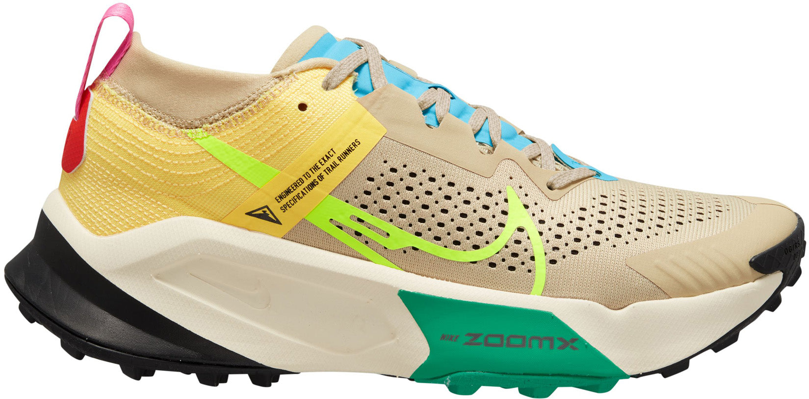 GEMAAKT VOOR ZWARE PADEN. Met de Nike ZoomX Zegama Trail kun je het meest lastige terrein aan. De schoen biedt meer grip en stabiliteit, waardoor vermoeidheid wordt verminderd en je wordt beschermd tegen plotselinge impact. Zo kun je klimmen en langer blijven doorgaan als het zwaarder wordt. Of het nu gaat om een uitdagend, rotsachtig landschap dat bergopwaarts of steil wordt, of om gladheid op een verraderlijke trail, voel je zelfverzekerd als je besluit om offroad te gaan. Meer ondersteuning voor langere tijd Een lichte Nike Zoom X middenzool wordt gecombineerd met hogere stapelhoogtes voor meer bescherming tijdens langere runs. Zelfverzekerd op elke ondergrond Een dieper, divers noppenpatroon met meer ruimte zorgt voor meer grip op lastigere terreinen. Een stevig gevoel op elke ondergrond Een bovenwerk van mesh en een interne constructie in de hak zorgen voor stabiliteit op alle soorten paden. Daarnaast zorgen ze ook voor betere ventilatie en afvoer van vocht.
